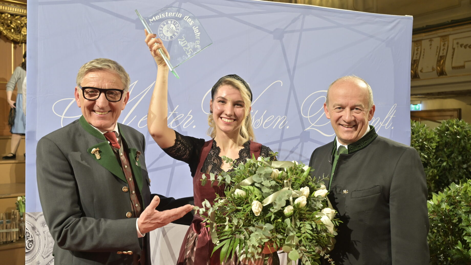 Im festlichen Rahmen des Grazer Congress wurde bei der traditionellen Meisterbriefverleihung ein besonderer Moment festgehalten: WKO-Steiermark-Präsident Josef Herk, die „Meisterin des Jahres“ Lena Kemmer und Spartenobmann Johann Reisenhofer gemeinsam auf der Bühne.
